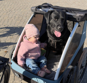 Garonnes Bruder Barney / Granit vom Steinrötsch teilt jetzt seinen Fahrradanhänger...... |